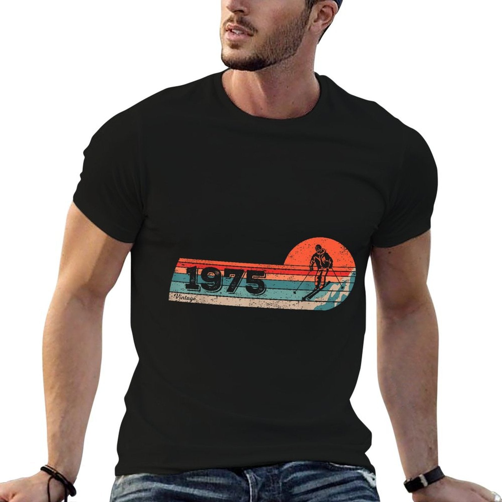 - Heat-transfer prints retain vibrant colors wash after wash, perfect for Skiers Skier Vintage Born 1975 Birthday Skiing Ski casual outfits or statement streetwear.