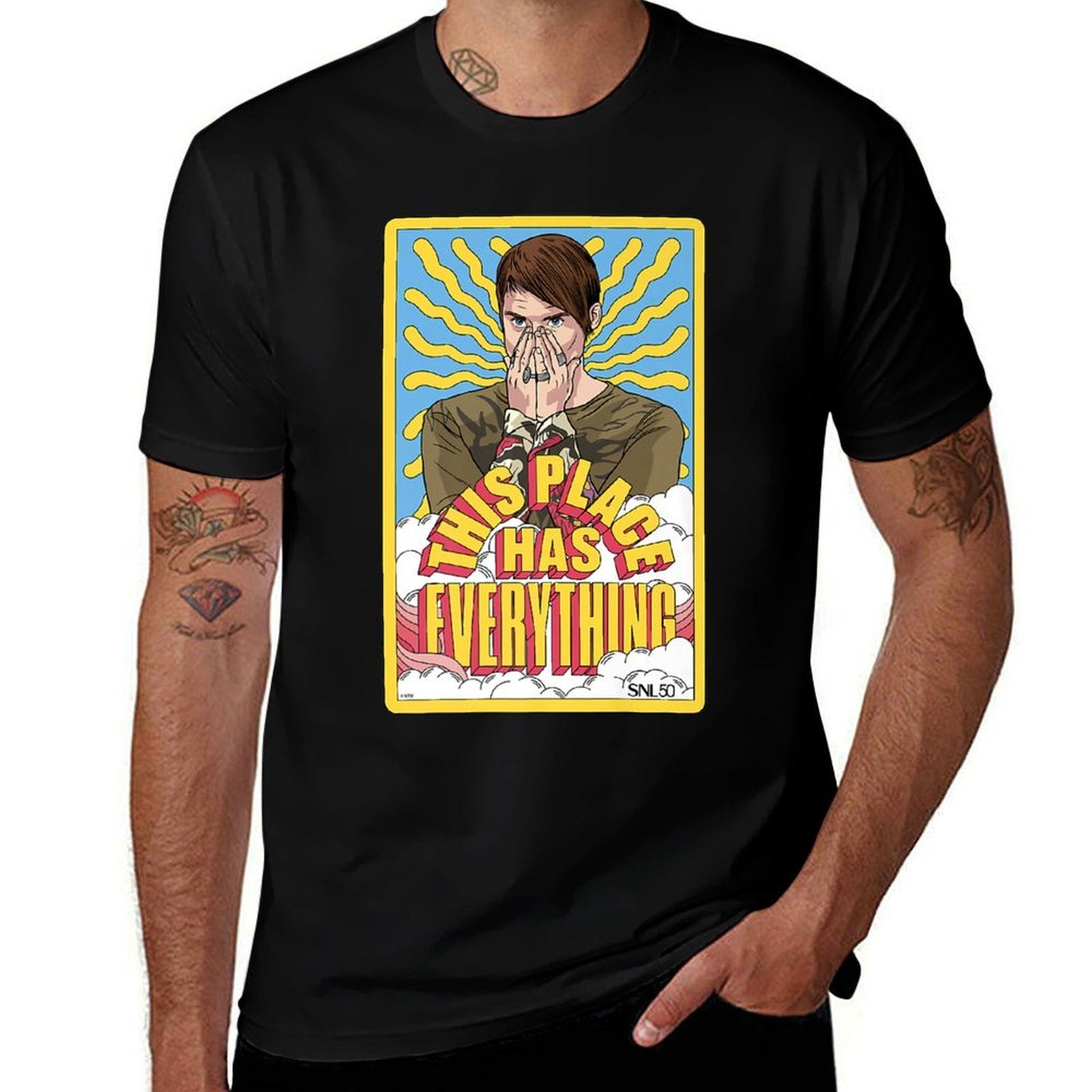 - Care Reminder: Skip soaking and bleach to extend your SNL This Place Has Everything Stefon New Yorks Hottest Premium tee’s lifespan.